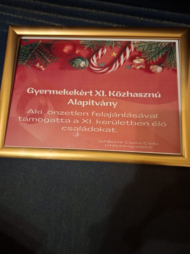 A 2023-as alapítványi munkánkat értékelve egy szép díszoklevelet kaptunk a XI. kerületből.